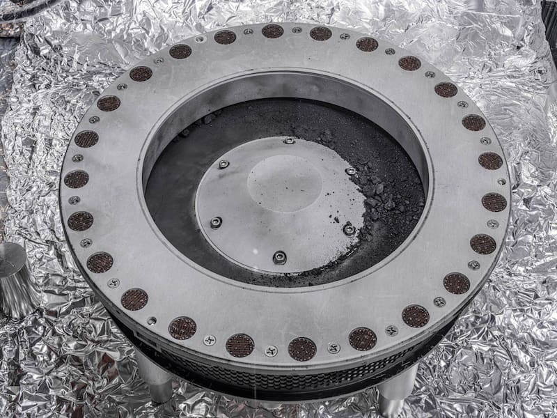 Los técnicos todavía están desmontando metódicamente el hardware que rodea el recipiente científico interno que contiene la mayor parte del espécimen, un proceso que se espera que lleve dos semanas más.
