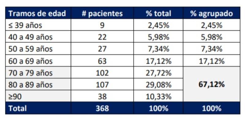Si se lo compara con el informe anterior, solo uno de los fallecidos tendría una edad igual o menor a 39 años, mientras que la mayor cantidad de fallecidos (8) corresponderían al tramo de 70 a 79 años.