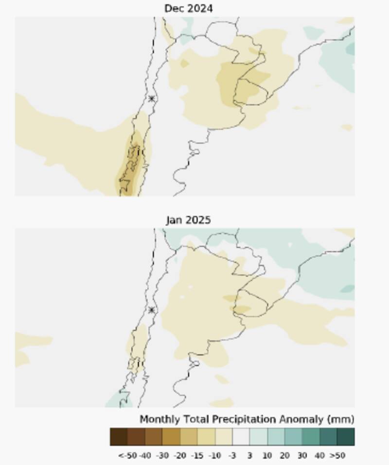 Los modelos oceánicos de largo plazo están bastante optimistas, proyectando el término de la fase fría hacia fines del verano. Esto haría que el invierno de 2025 se inicie con aguas a temperaturas neutras. De ocurrir esto, se debilitaría el bloqueo anticiclónico de los frentes durante el invierno, lo que permitiría lluvias cercanas a la normalidad a partir de junio, sostiene el informe.