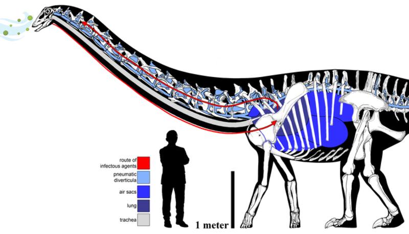 Los autores especulan que esta infección respiratoria podría haber sido causada por una infección fúngica similar a la aspergilosis, una enfermedad respiratoria común que afecta a las aves y reptiles hoy en día y que puede dar lugar a infecciones óseas. Además de documentar la primera aparición de una infección respiratoria de este tipo en un dinosaurio, esta infección fósil también tiene importantes implicaciones anatómicas para el sistema respiratorio de los dinosaurios saurópodos.