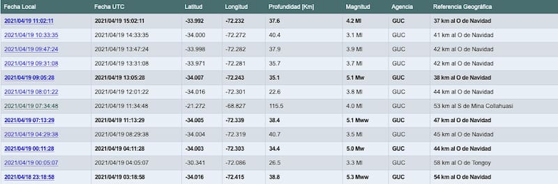 ¿Qué ocurre entonces con estos otros sismos de Mw +3, que no llaman tanto la atención? El sismólogo agrega que “en este caso hubo tres eventos de magnitud 5 -más uno Mw 4.2-, entonces los más pequeños son normales. Y si tuviésemos más estaciones sismológicas en la zona, podríamos percatarnos que en vez de los 20 sobre Mw 3, hayan ocurrido 200 sobre Mw 2, por ejemplo”.