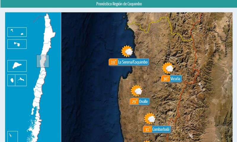 Es más, este fin de semana se esperan hasta 31°C en algunas comunas de la Región de Coquimbo, como las localidades de Vicuña y Combarbalá. Santiago por su parte tendrá máximas en torno a 22°C y 23°C con nubosidad parcial, señala la Dirección Meteorológica de Chile (DMC).