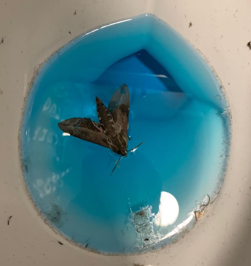 “Lo único que atinó a hacer mi mamá -porque yo les tengo fobia- fue a tratar de pegarle con una toalla. Lo hizo muchas veces porque era muy rápida, hasta que cayó y vimos que era una polilla enorme. Tiene que haber medido unos 15 cm de largo aproximadamente. De hecho, en la foto se ve esa especie de ‘polvo’ que botan. El baño quedó lleno de esas pelusas que cubren a las polillas”, agrega.