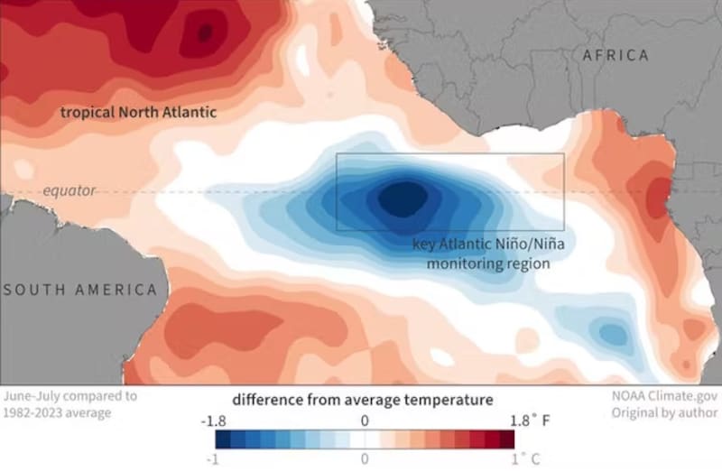 Este enfriamiento proviene de dos fenómenos climáticos con nombres similares: La Niña, que se forma en el Pacífico tropical, y la menos conocida Niña del Atlántico.
