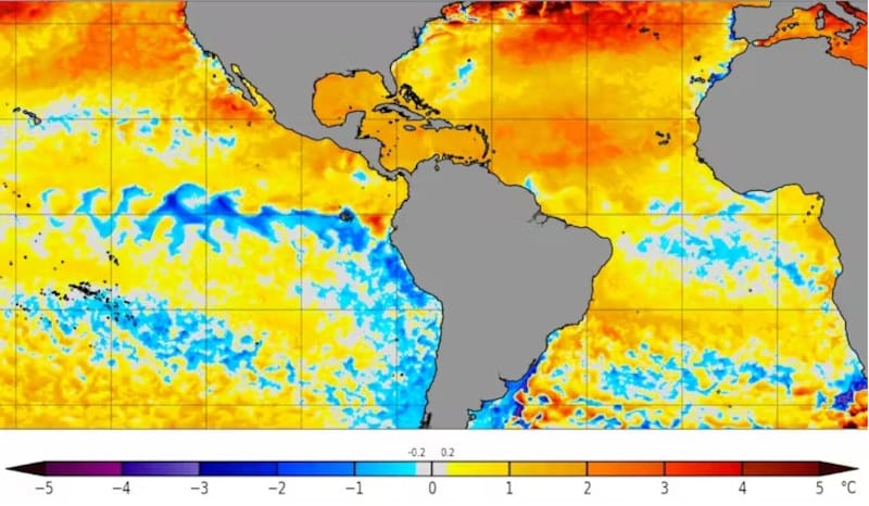 En los últimos dos años se han registrado temperaturas oceánicas excepcionalmente altas en el Atlántico y en gran parte de los océanos del mundo. Es probable que las dos Niñas contribuyan a aliviar un poco el enfriamiento en ciertas regiones, pero es posible que no dure mucho.