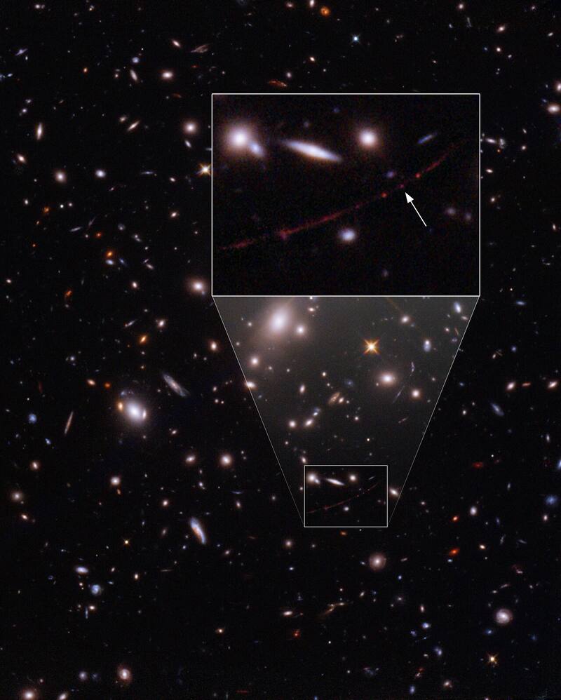 El descubrimiento se realizó a partir de los datos recopilados durante el programa RELICS (Reionization Lensing Cluster Survey) del Hubble, dirigido por el coautor Dan Coe en el Instituto de Ciencias del Telescopio Espacial (STScI). ”Normalmente, a estas distancias, las galaxias enteras se ven como pequeñas manchas, la luz de millones de estrellas mezclándose“, añadió Welch. “La galaxia que alberga esta estrella ha sido magnificada y distorsionada por lentes gravitacionales en una larga media luna que llamamos Arco del Amanecer”.