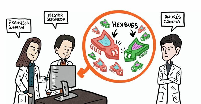 Es así como en 2019, el equipo conformado por los doctores Concha y Guzmán, además del investigador principal del Núcleo Milenio y docente en la UAI, Néstor Sepúlveda, colocaron en un corral circular un centenar de estos mini robots, a cada uno de los cuales les agregaron un caparazón con un magneto, para estudiar sus movimientos.