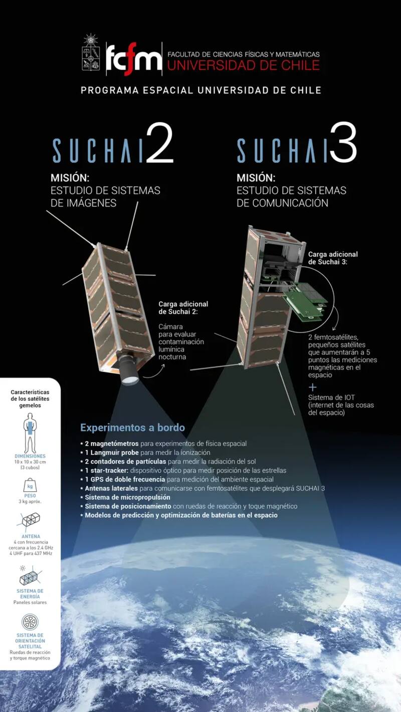 Se trata de una experiencia desarrollada por un grupo de civiles en el país, que continúa el trabajo comenzado con el nanosatélite Suchai-1 (lanzado en 2017), y que permitirá dar un salto en el Programa Espacial de la Universidad de Chile hacia tecnologías y medición de ambientes espaciales más sofisticados.