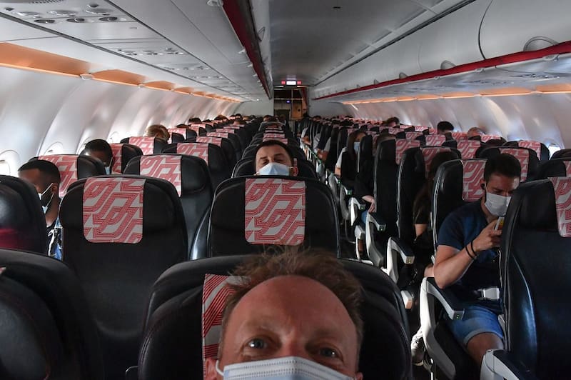 En un avión (con las medidas adecuadas) nivel de ventilación contrarresta eficazmente la proximidad a la que estarán sujetos los viajeros durante los vuelos. “El nivel de ventilación proporcionado en la aeronave a bordo reduciría sustancialmente la oportunidad de transmisión de partículas infecciosas, cuando se combina con el cumplimiento constante de las políticas de uso de mascarillas”, detalla la investigación.