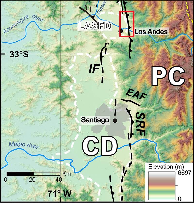Un reciente trabajo se propuso revelar estas y otras características. Se trata del paper “Active thrust tectonics along the western slope of the Central Andes southernmost Pampean flat-slab segment (~33°S, Chile): The Cariño Botado fault system” , publicado en septiembre pasado en la revista Geomorphology por investigadores de la Universidad de Chile, University of Iceland, University of Toulouse (Francia) y Baylor University (EE.UU.), quienes realizaron mapeos en terreno, datación y revisión de bibliografía durante varios años.