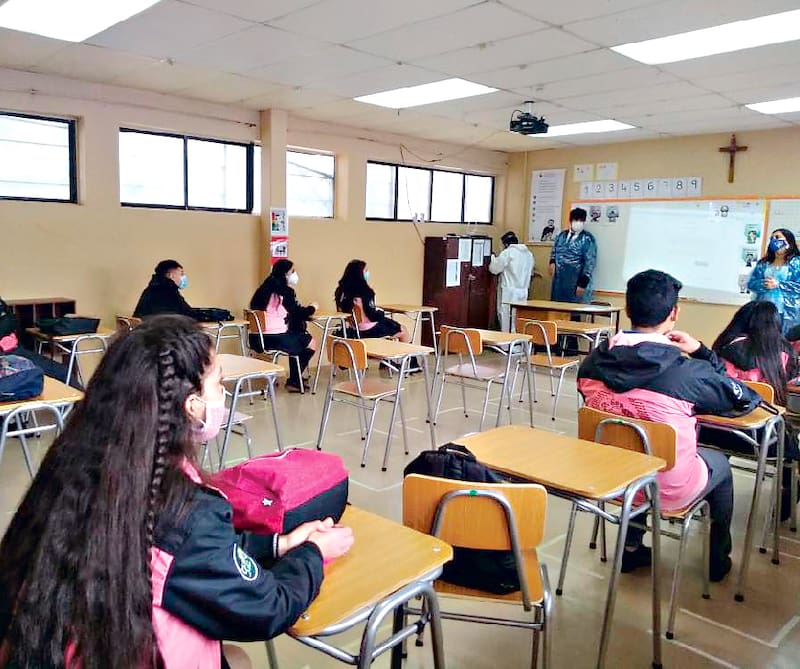 Bajo este modelo, en algunos establecimientos han dividido a los alumnos en grupos. Mientras algunos están en formato presencial, el resto asiste a la clase de manera virtual. Todo gracias a las plataformas digitales.