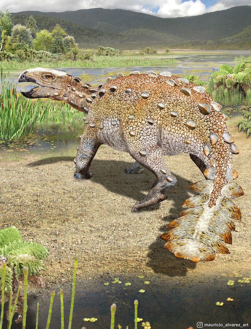 Stegouros elengassen es un dinosaurio acorazado que además tenían un mazo en su cola con el que se defiendía. Es unop de los dinosaurios más completos encontrado en el país y por su rareza e impacto a nivel mundial es junto con el Chilesaurus diegosuarezi, los dos dinosaurios chilenos publicados en la prestigiosa revista Nature.