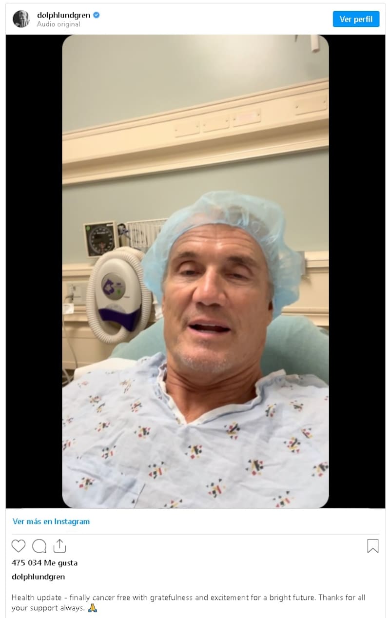 El actor Dolph Lundgren posteó en su cuenta de Instagram que había logrado derrotar a la enfermedad, después que los médicos le dieran inicialmente un sombrío pronóstico de sólo dos o tres años de vida.