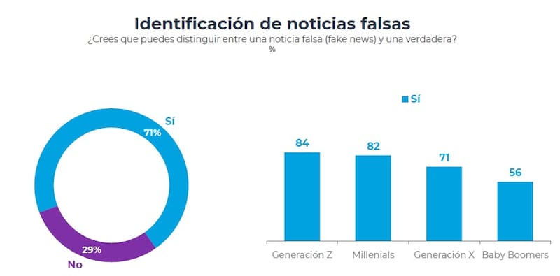 El documento también analizó una tendencia que lamentablemente se ha hecho habitual en el último tiempo, las fake news. Facebook es señalado como el medio con más fake news (47%), donde el 71% reconoce cuando se trata de una verificando la información correspondiente.