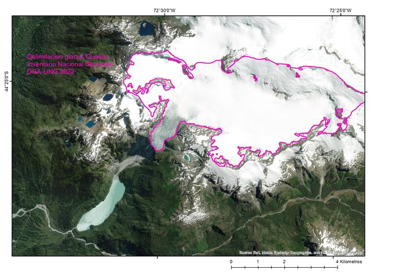 Según el inventario nacional de glaciares 2022, el glaciar Colgante Queulat A, situado en la comuna de Cisnes en la Región de Aysén, tiene una superficie total de 22,6 km2. Este glaciar se caracteriza por su espectacularidad, al tener el frente del glaciar “colgando” frente a una imponente pared de roca, que le ha dado fama como un imponente atractivo turístico, y también por sus numerosos registros de caídas de bloques de hielo, nieve y agua desde su frente, como los registrados en 2014, 2018 y 2019.