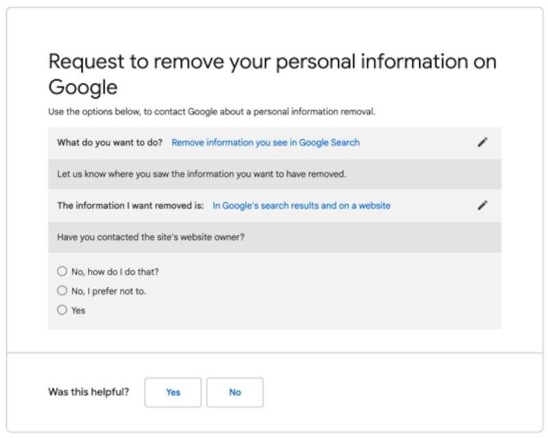 Luego, Google proporciona instrucciones paso a paso sobre cómo proceder, según cuáles sean sus solicitudes de eliminación y preferencias.