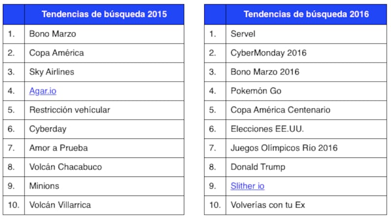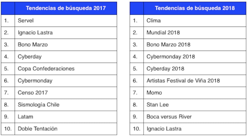 Desde hace tiempo en Google se mide el pulso de cada año tomando nota de los términos que fueron tendencia de búsqueda en ese período, es decir, aquellas consultas que tuvieron altos peaks de interés de búsqueda comparado con el año anterior. Es así como se define Year in Search: El Año Búsquedas, una radiografía a los intereses y curiosidades online de los internautas en Chile. En este contexto, las personas han usado Google por los últimos 10 años como una herramienta de gran utilidad para preguntar, explorar, encontrar y descubrir información, personajes, y acontecimientos nacionales e internacionales.