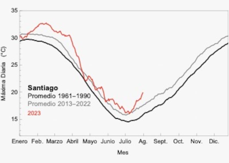 “Esta extraordinaria sucesión de olas de calor ha hecho que este 2023 sea hasta la fecha en Santiago, el año más cálido jamás registrado en terminos de temperaturas máximas”, señala.