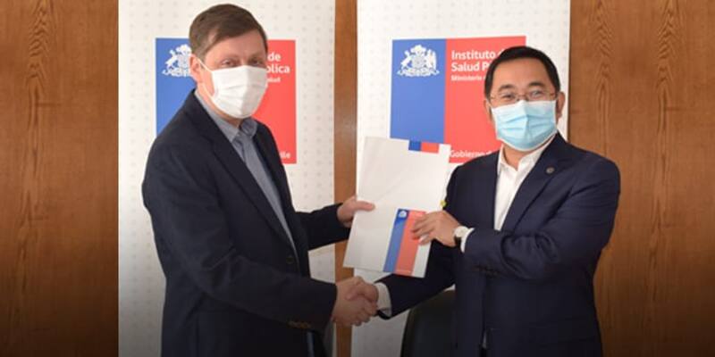El convenio fue firmado por el vicepresidente de Sinovac Weining Meng, responsable del estudio en Chile y el director (s) del ISP Heriberto García Escorza quien destacó la importancia de este hito “La colaboración del ISP como autoridad reguladora, en este nuevo polo de desarrollo científico, enriquecerá el conocimiento sobre el comportamiento del virus que causa Covid-19. El ISP velará por el cumplimiento de los protocolos de los estudios y recibirá los resultados a medida que se vayan desarrollando las pruebas”.