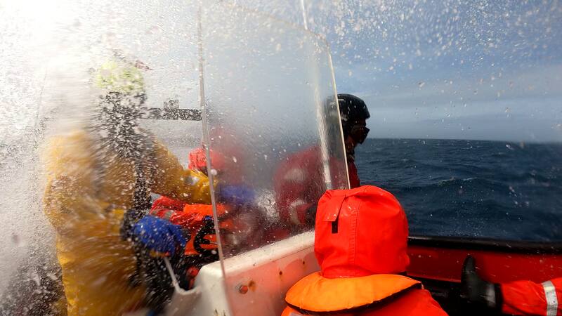 Es sábado y nos embarcamos con la idea de hacer un muestreo más y continuar con el monitoreo temporal de la bahía, pero a mitad de camino las olas no paran de crecer y parece que las condiciones son peores de lo esperado. Tras varias duchas de agua de mar helada toca cancelar la operación y regresar a la base. En este juego uno pierde a menudo, así que toca volver y quitar la sal a todos los equipos (incluidos nosotros) y dejar todo preparado para salir a hacer el que será nuestro último trabajo cuando las condiciones lo permitan. Ya estamos a pocos días de la fecha en la que está programada nuestra salida, así que estamos ansiosos por poder hacer un último recorrido y dar por terminada la expedición.