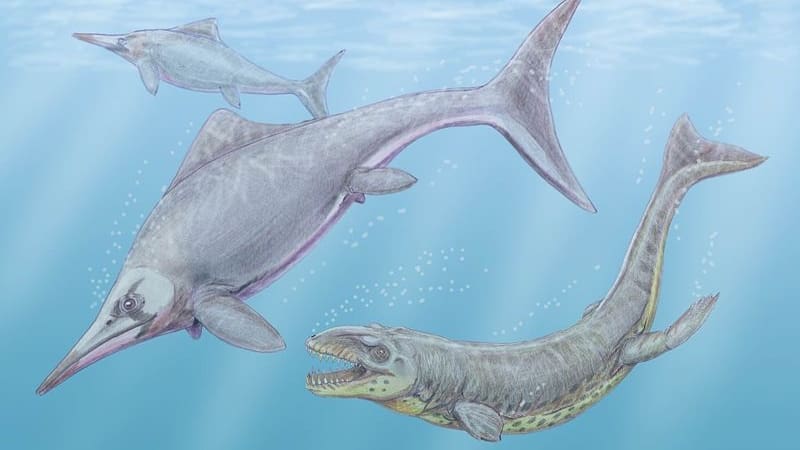 Los ictiosaurios eran un grupo de reptiles marinos que aparecieron en los océanos después de la extinción masiva del Pérmico, hace unos 250 millones de años. Tenían cuerpos parecidos a los de un pez, similares al atún moderno, pero respiraban aire como los delfines y las ballenas. Como las orcas modernas o los grandes tiburones blancos, pueden haber sido depredadores ápice de sus ecosistemas, pero hasta hace poco ha habido poca evidencia directa de esto.