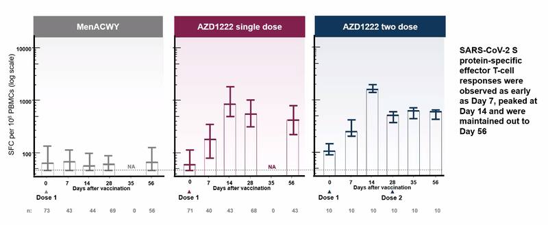 En todos los participantes, se indujo una respuesta de células T, que alcanzó su punto máximo el día 14, y se mantuvo dos meses después de la inoculación.
