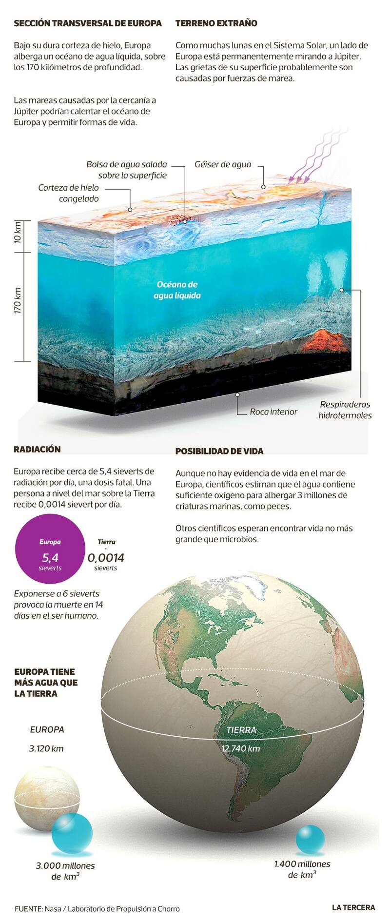 Kevin P. Hand, astrobiólogo de la Nasa, señaló en una entrevista que si hay un lugar en el que se podría encontrar vida fuera de la Tierra, este sería la luna Europa, la que alberga debajo de su capa de hielo un océano de agua líquida de cien kilómetros de profundidad.