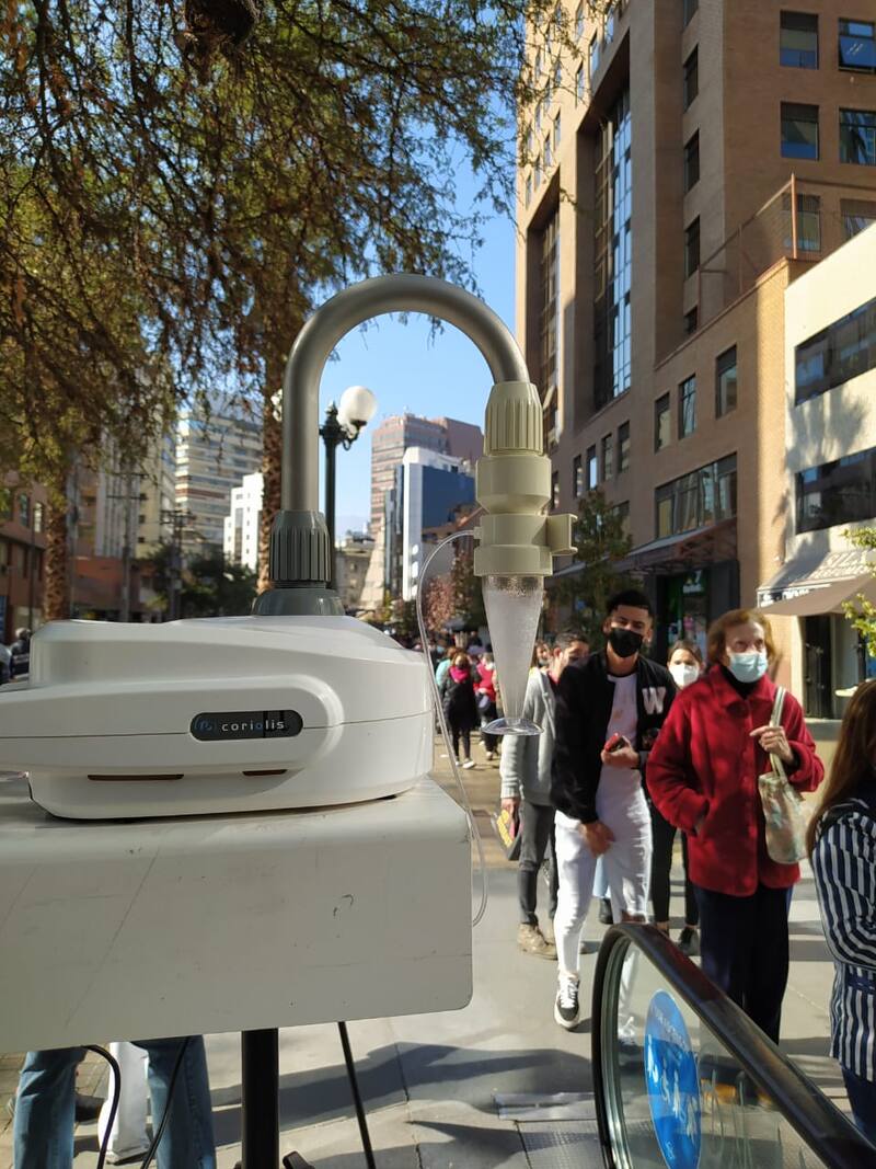 Todos los miércoles tomamos muestras en el aire, “lo hemos hecho durante las últimas 30 semanas. Tenemos una distribución temporal y espacial para seguir analizando. Estas muestras se toman con un aparato que succiona aire a volúmenes controlados, usamos 300 litros de aire por minuto, lo que nos entrega aprox. 10 ml de muestra por donde ha pasado dicho volumen de aire. Luego procesamos la muestra para secuenciación”, revela Castro.