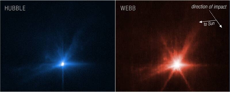 Las observaciones de Webb y Hubble juntas permitirán a los científicos obtener conocimiento sobre la naturaleza de la superficie de Dimorphos, cuánto material fue expulsado por la colisión y qué tan rápido fue expulsado. Además, Webb y Hubble capturaron el impacto en diferentes longitudes de onda de luz: Webb en infrarrojo y Hubble en visible.
