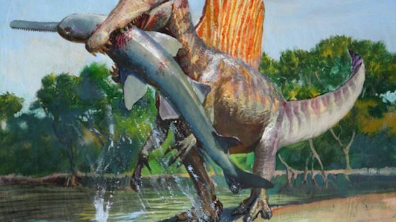 En aquel momento, el Spinosaurus fue descrito como un depredador semiacuático que merodeaba por la orilla de los ríos del Cretácico, en lugares fangosos para emboscar a los peces con sus enormes mandíbulas de cocodrilo y sus dientes entrelazados.