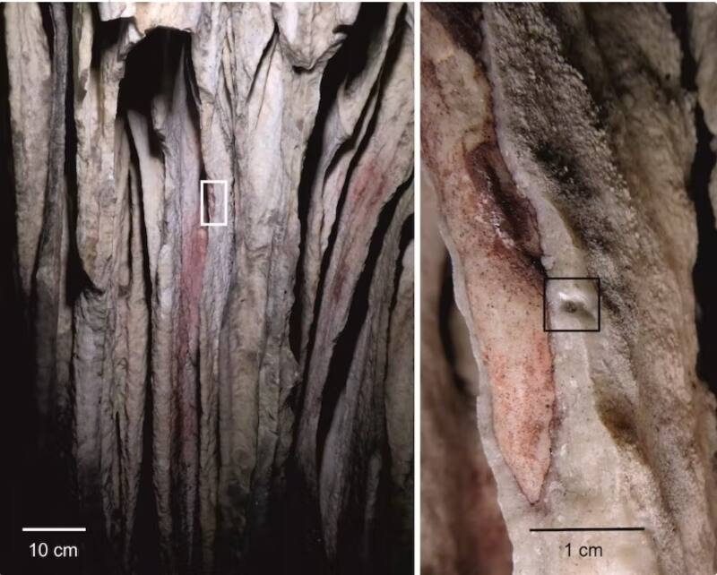 Luego, hace al menos 65.000 años, los neandertales usaron pigmentos rojos para pintar marcas en las paredes de cuevas profundas en España. En la cueva de Ardales, cerca de Málaga, en el sur de España, colorearon las secciones cóncavas de estalactitas de color blanco brillante.
