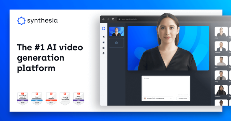 2. Synthesia: crea videos a partir de un texto, los que puede ser en hasta 120 idiomas diferentes.
