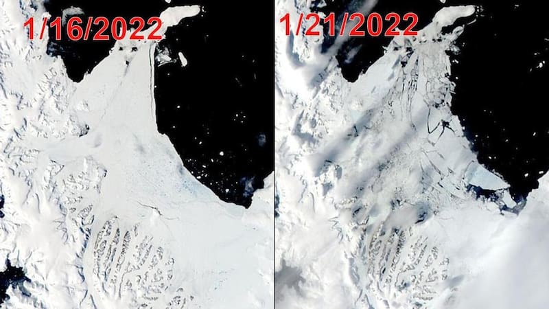 Después de más de una década anclada a la costa en la bahía Larsen B, una gran extensión de hielo marino se "separó" de la península antártica. El fenómeno climático generado por altas temperaturas sería el responsable.