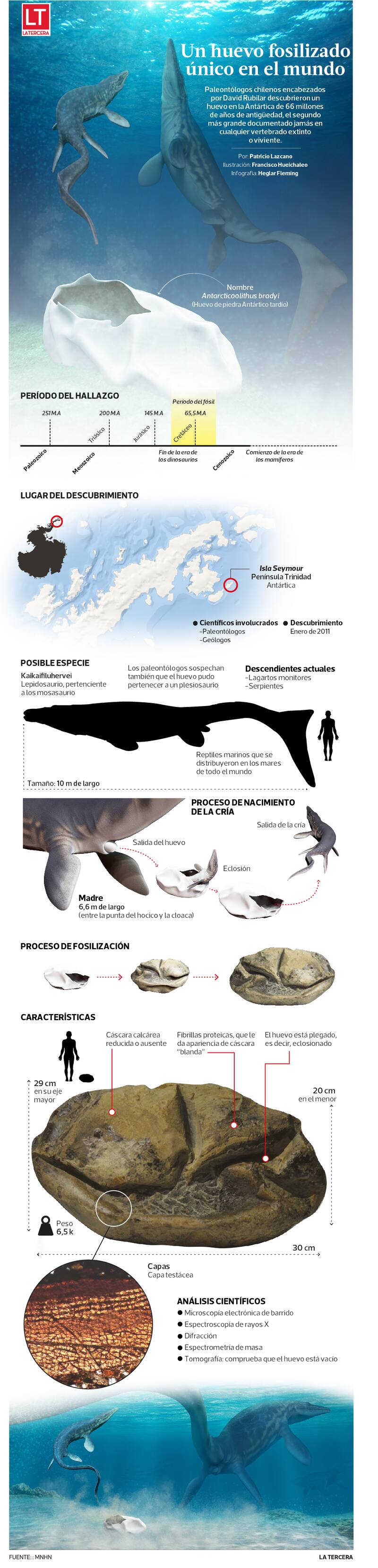 “Fue la primera vez que se identificó un huevo “blando” que sobrepasa los 700 gramos de masa estimada. Con sus 6,5 kilos, este huevo es comparable al gran huevo del “ave elefante” de Madagascar y a los mayores huevos de dinosaurios no aviares lo que lo convierte en el segundo huevo de algún vertebrado jamás descubierto”, sostiene Rubilar, destacando también que su hallazgo es relevante para conocer la reproducción de los reptiles marinos, de lo cual existen muy pocos fósiles o registros.