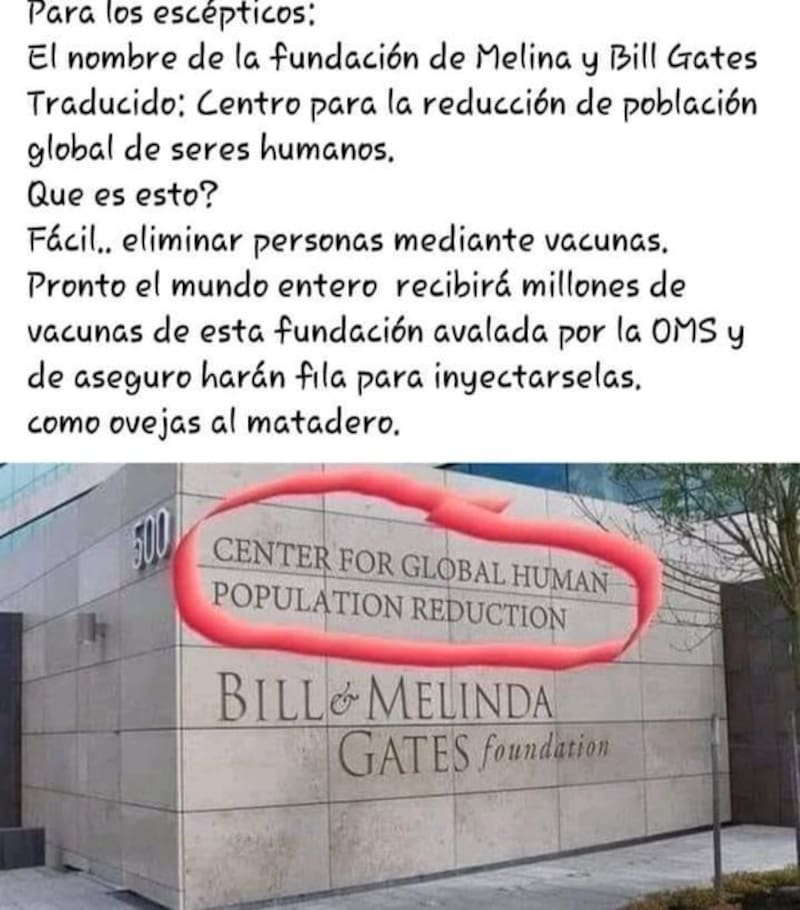 Una muestra lo vimos este fin de semana, cuando en Twitter se difundió una cuestionable imagen que mostraba la entrada a la Fundación Bill y Melinda Gates en EE.UU. como un “Centro de para la reducción de población global de seres humanos”. Sin embargo, una sola visita a Google Street View en la sede de la Fundación, en Seattle, nos muestra la verdad.