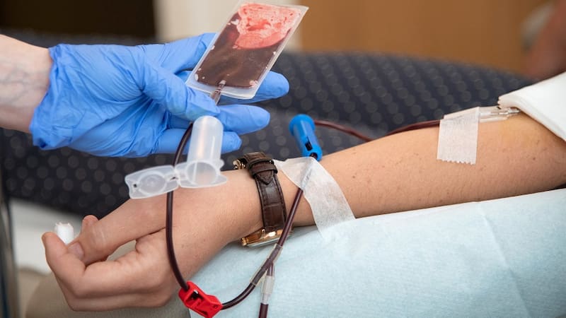 De acuerdo a la Clínica Mayo, una transfusión de sangre es un procedimiento médico de rutina en el cual el paciente recibe sangre donada por medio de un tubo estrecho colocado en una vena del brazo.