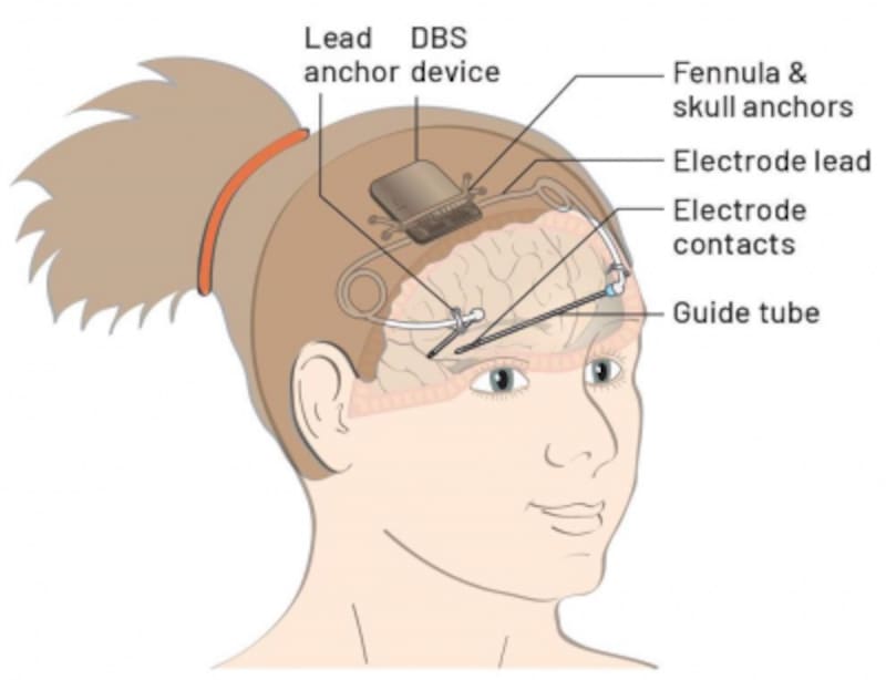 La estimulación cerebral profunda (DBS) es un tratamiento que implica cirugía para insertar un pequeño dispositivo que estimula partes específicas del cerebro, dice el comunicado. El equipo insertó dos electrodos profundamente en el cerebro de Oran hasta llegar al tálamo, que es un centro de señales eléctricas en el cerebro.