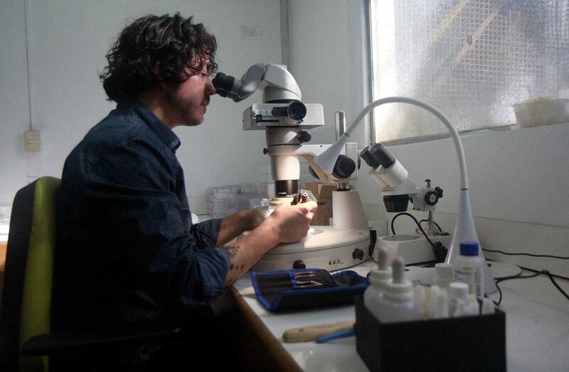 “Es una suerte de estabilización del objeto porque, a pesar de que están convertido en roca, son muy frágiles, se suelen quebrar fácilmente y esto se lleva al laboratorio. En el laboratorio se destapan y ahí uno empieza la preparación, que puede ser con martillo neumático o con puntas bajo lupa, dependiendo del tamaño del objeto”, explica Soto.
