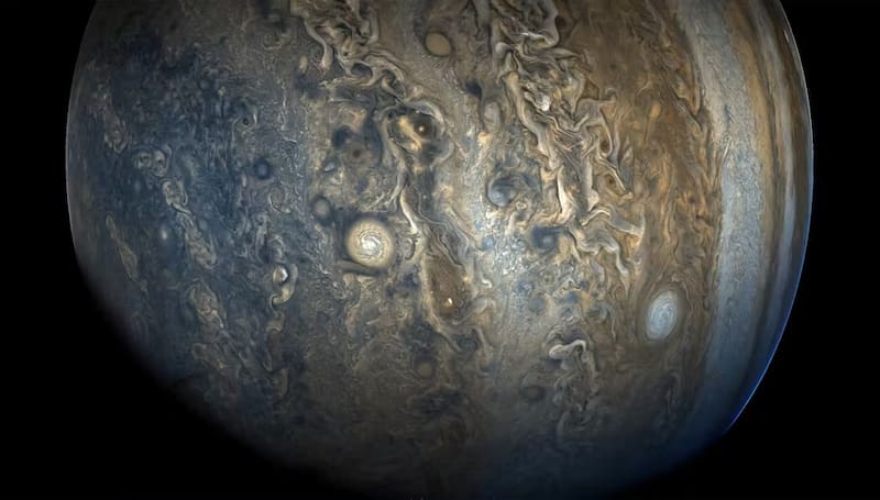 El planeta Júpiter no tiene suelo firme, no tiene superficie, como la hierba o la tierra que pisamos aquí en la Tierra. No hay nada sobre lo que caminar ni ningún lugar donde aterrizar una nave espacial.