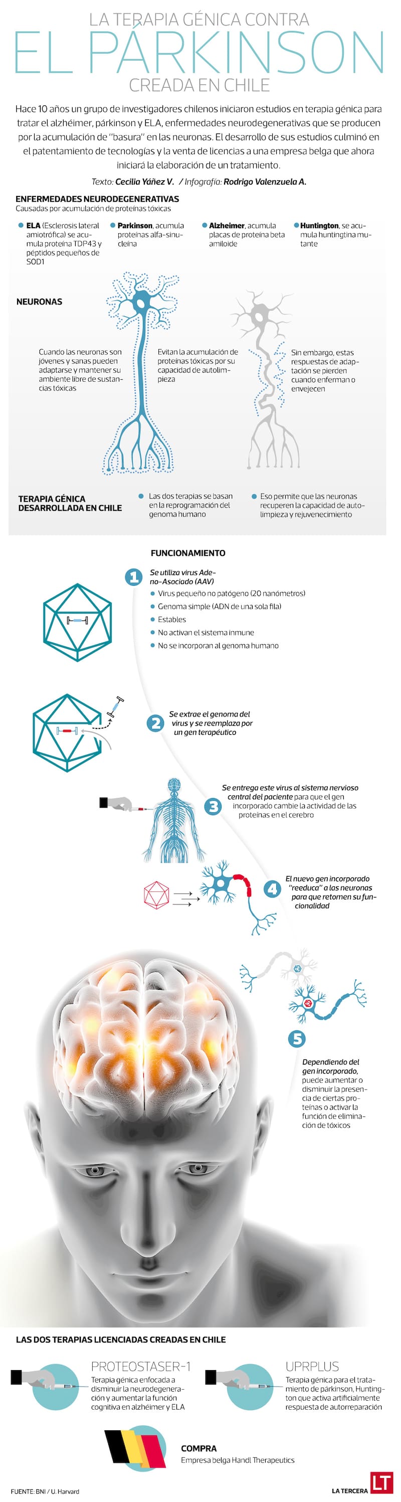 Utilizando un virus e información genética que modifica la actividad de las neuronas, Investigadores chilenos lograron patentar sus avances trabajos y licenciar el conocimiento obtenido a una empresa de biotecnología belga para que siga desarrollando los estudios clínicos en humanos.