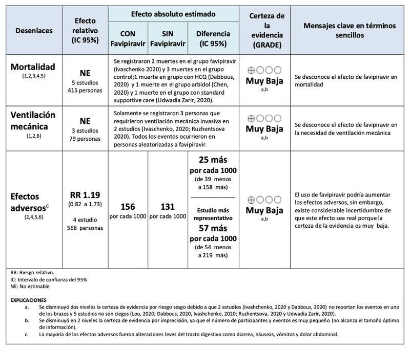 Hasta el 1 de diciembre del año pasado, el último estudio relacionado al Avifavir había sido realizado por el Departamento de Evaluación de Tecnologías Sanitarias y Salud Basada en Evidencia del Ministerio de Salud, a través de un análisis de cinco estudios con 500 personas en total, buscando disminuir la mortalidad, y requerimiento de ventilación mecánica. Y la evidencia no fue suficiente.