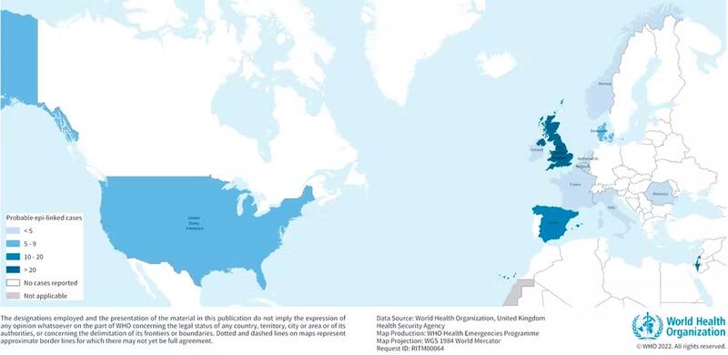 Según la OMS, ya hay al menos 169 casos, de los cuales 1 murió y otros 17 necesitaron de un trasplante de hígado. Por ahora, la distribución geográfica de los casos no parece seguir ningún patrón. Los casos han aparecido en el Reino Unido de Gran Bretaña e Irlanda del Norte (114), España (13), Israel (12), los Estados Unidos de América (9), Dinamarca (6), Irlanda (5), Países Bajos (4), Italia (4), Noruega (2), Francia (2), Rumanía (1) y Bélgica (1).