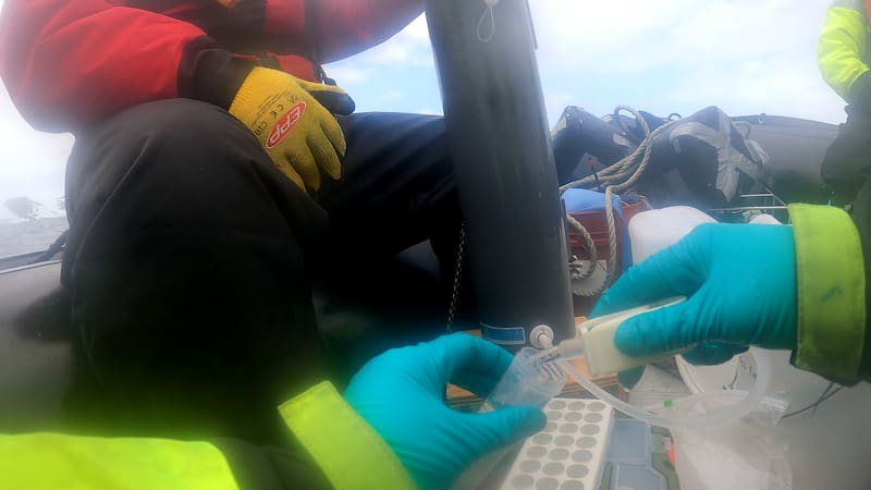 Armados de energía, o inconsciencia, nos hicimos a la mar a lanzar todos nuestros equipos a mano. Ya saben la vieja y confiable tracción animal de dos patas. Bajar equipos pesados a cien metros de profundidad es casi tan sencillo como costoso es izarlos. Nada que no se pase con un buen exabrupto. ¡Maldita gravedad! El bote es chico para tanto equipo, cabo, botellas, y bidones, muchos bidones, pero como me enseñaron mis mentores, cada dato es oro. Así que con un poco de sudor y un extra de mojadura salada regresamos al laboratorio con nuevos datos y muestras que nos ayuden a completar este puzle Antártico.