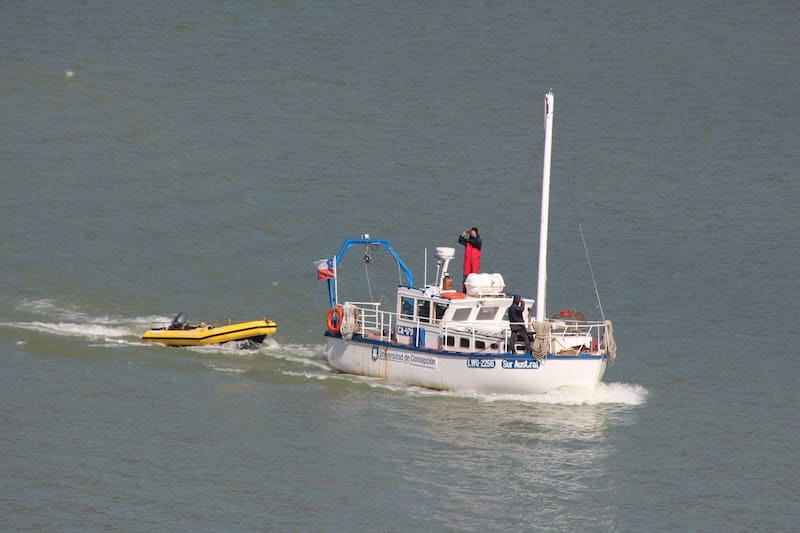 Ese contacto con la naturaleza lo explotó a fondo el equipo de Copas que estaba embarcado para estudiar el efecto del eclipse bajo el mar, en la bahía ubicada en la desembocadura del canal Baker. “Hacemos un monitoreo constante de todo lo que es la temperatura del agua, la salinidad, vemos cómo se van mezclando estas capas que son tan distintas, que es lo que pasa cuando hay una corrosión de aluminio, cuál es la diversidad de organismos marinos que hay aquí. Estuvimos también haciendo un monitoreo de cetáceos”, sostiene Fernández, quien también es académica de la Facultad de Cs. Naturales y Oceanográficas de la Universidad de Concepción.