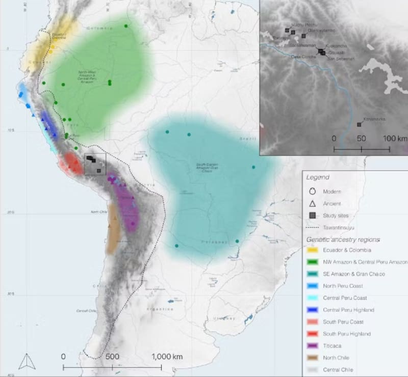 Solo siete de los individuos enterrados tenían ascendencia que podría vincularse con la vasta sierra sur de Perú, donde residen Machu Picchu y Cusco. Sin embargo, no podemos confirmar que fueran locales de Machu Picchu.