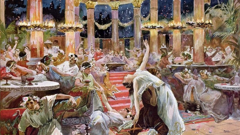 Unos 20 años después, el emperador Nerón “hacía que sus fiestas duraran desde el mediodía hasta la medianoche”, escribe Suetonio (Vida de Nerón, 27). Todos los sentidos necesitaban ser saciados en el transcurso de estas largas fiestas. Eran sinfonías de comida, música y cuerpos flexibles -para mirar o embelesar- mientras los esclavos hacían llover flores del techo y llenaban el aire de perfume.