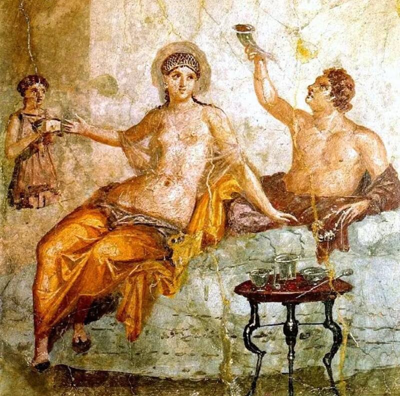 Los historiadores romanos también describieron suntuosas fiestas, combinando sexo y comida. En la década del 89-80 a. C., la tirana Sylla fue el primer líder político romano en convocar fiestas eróticas de bebida. Habría tomado el concepto del Oriente griego, donde había estado librando una campaña militar. Sylla se divertía hasta la mañana con actores cómicos, músicos y mimos, escribe Plutarco (Vida de Sylla, 36).