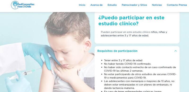 La próxima semana se iniciará el reclutamiento para el estudio clínico de la vacuna Coronvac, del laboratorio Sinovac Biotech en población infantil en Chile, un protocolo que pretende reclutar a cuatro mil niños y adolescentes entre los 3 y los 17 años y que por su número, se convertirá en el más grande en el mundo en este segmento.
