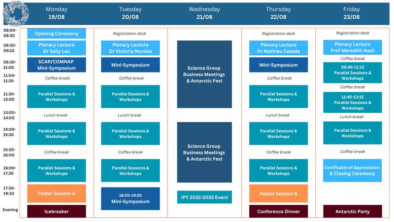 Además de las presentaciones científicas, la conferencia incluirá conferencias plenarias, minisimposios, sesiones paralelas, mesas redondas y presentaciones de pósteres científicos. También se llevarán a cabo actividades destinadas a involucrar a la comunidad local, subrayando la importancia de la ciencia antártica no solo para la comunidad científica, sino también para el público en general.