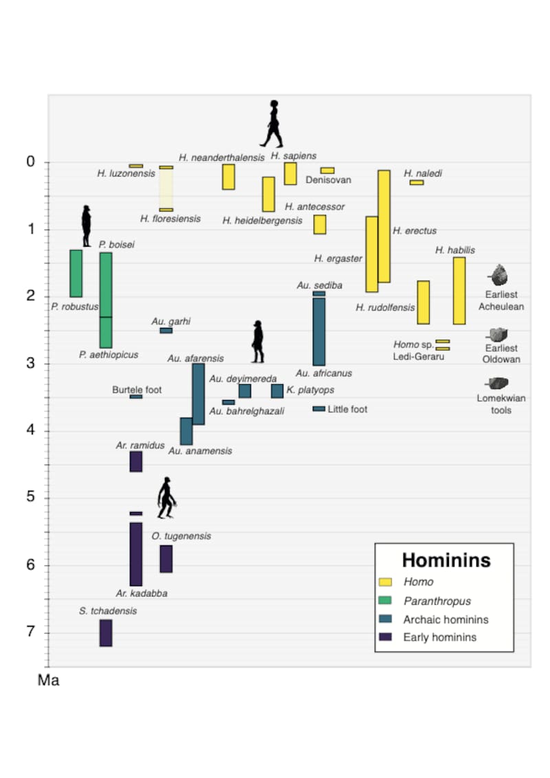 El actual consenso científico estima el origen del ser humano y su posterior evolución, apunta a que el primer ancestro común de nuestro género Homo haya aparecido hace alrededor de 3,8 millones de años.
